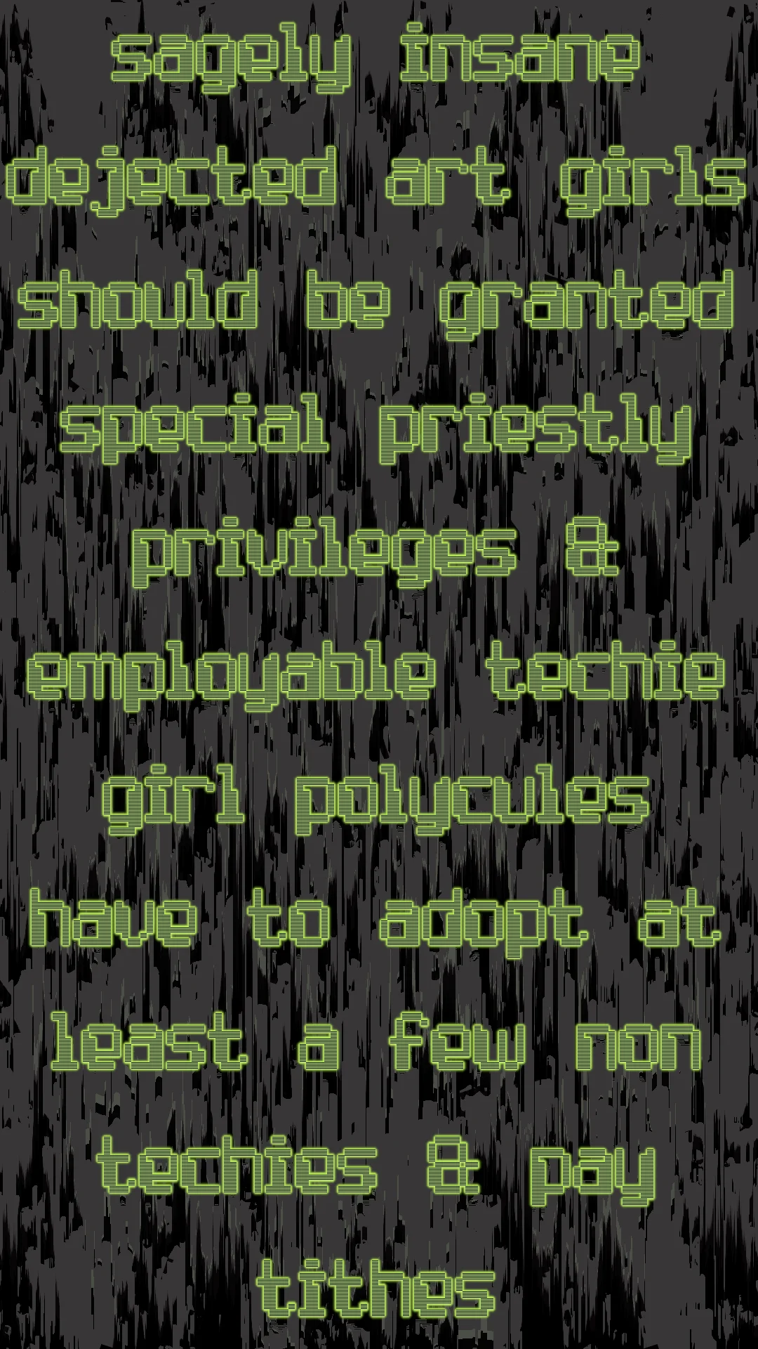 @nyx sagely insane dejected art girls should be granted special priestly privileges & employable techie girl polycules have to adopt at least a few non techies & pay tithes