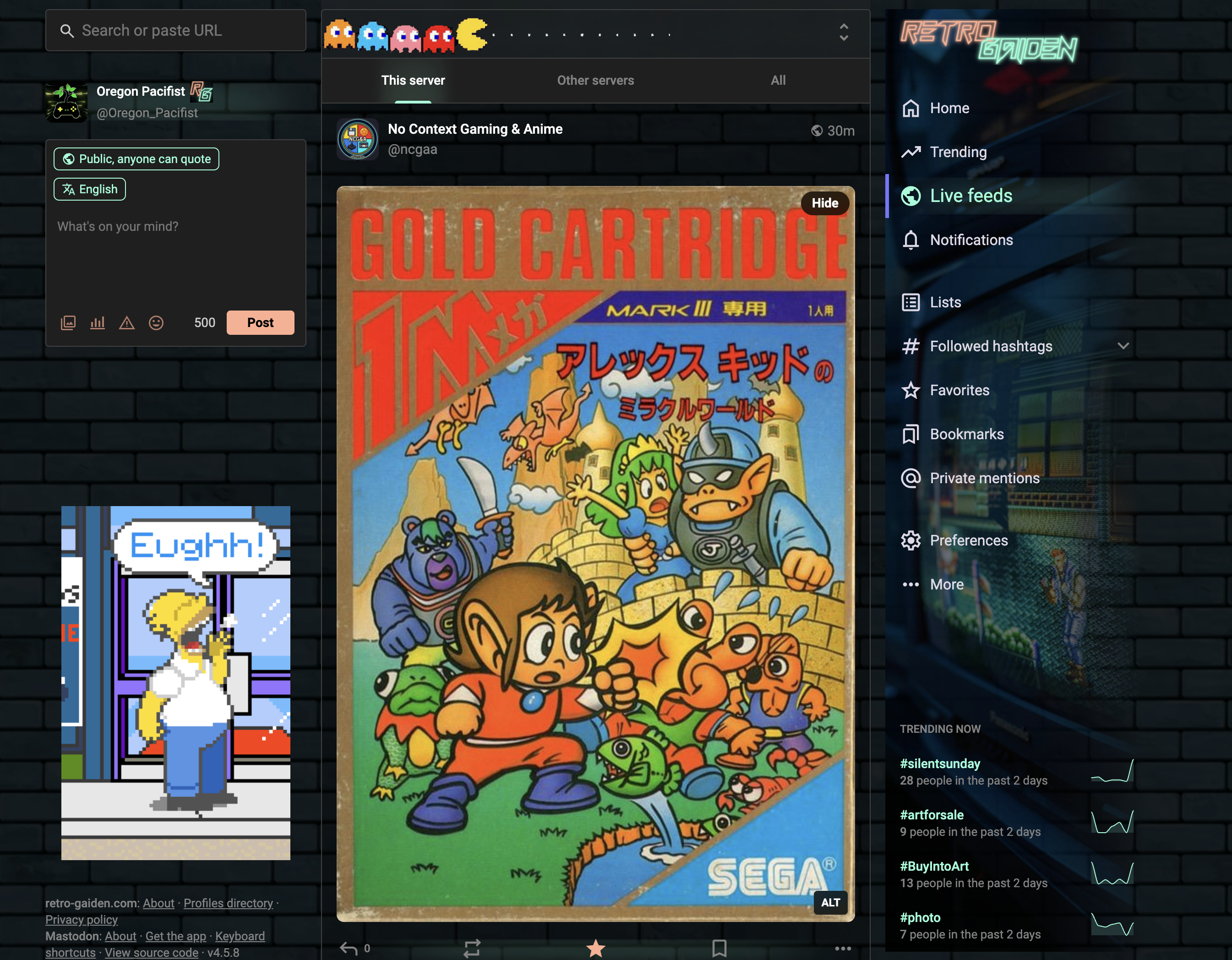 Before starting Retro Gaiden, I looked for a great retro-themed instance to join & promote. I fully expected to find one.