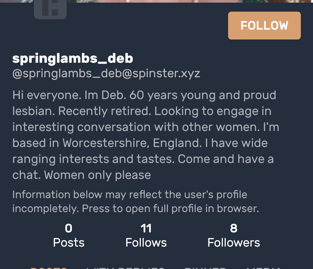 got my first follow request from a spinster in ages, sorry i'm taken beanbolbcool