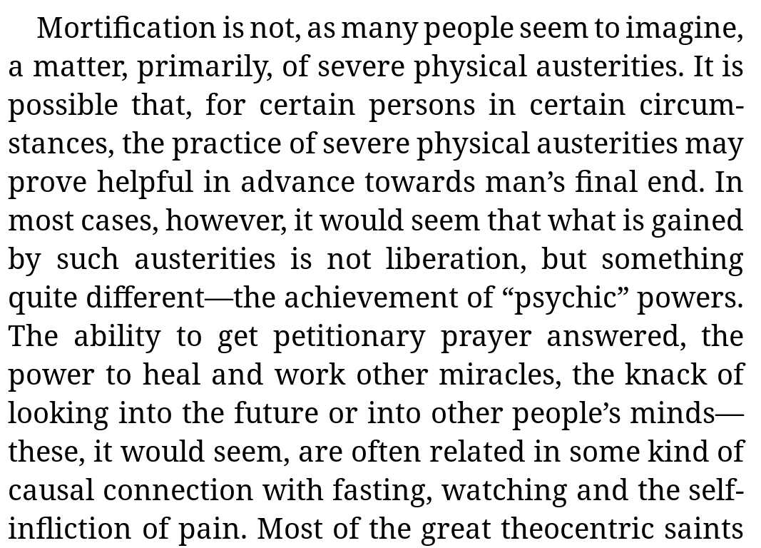 God doesnt grant siddhis for sins (self infliction of pain) huxley