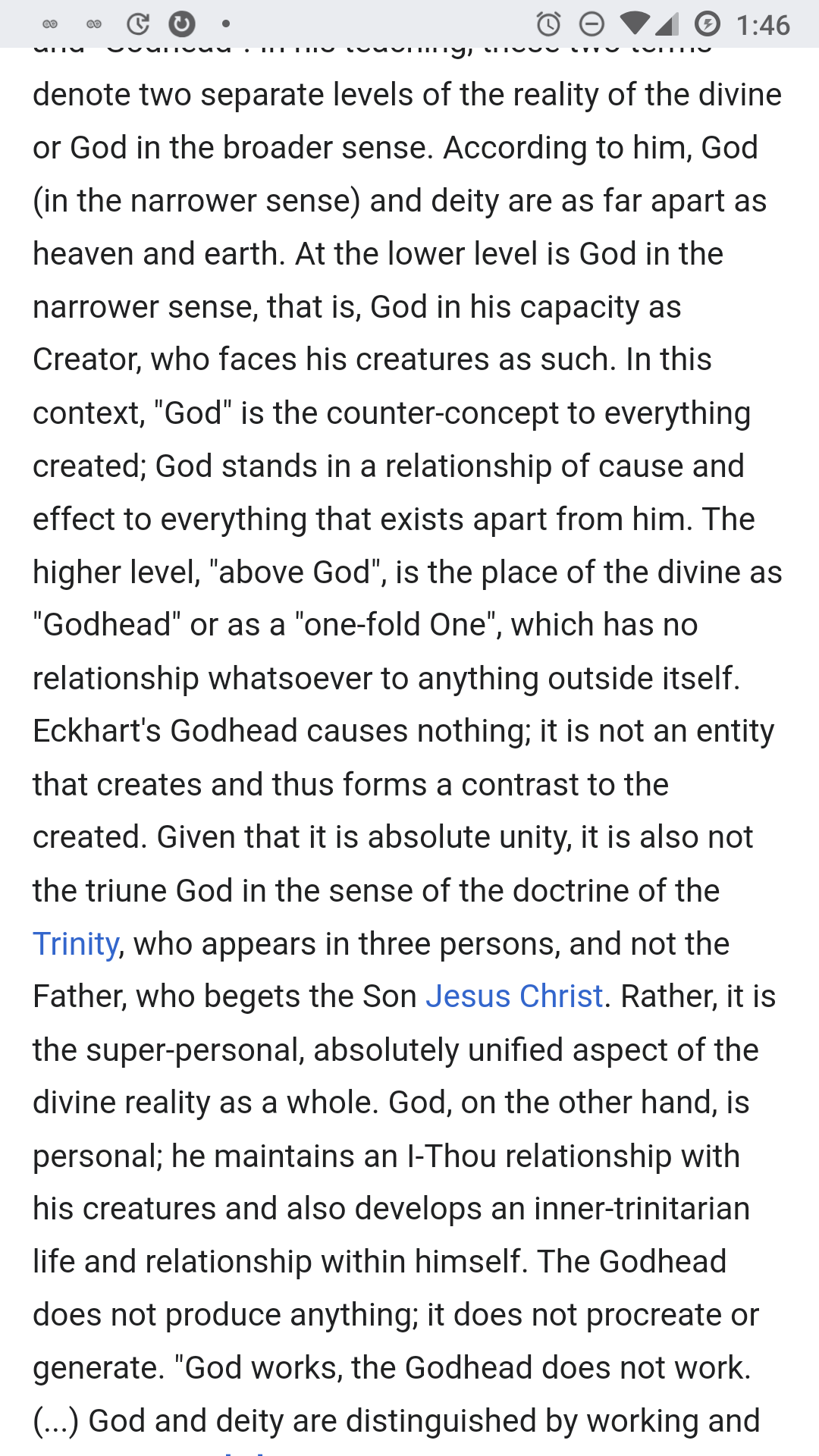 I get Eckhart's God vs Godhead now. basically God as involved with his creation and the transcendent Brahman
