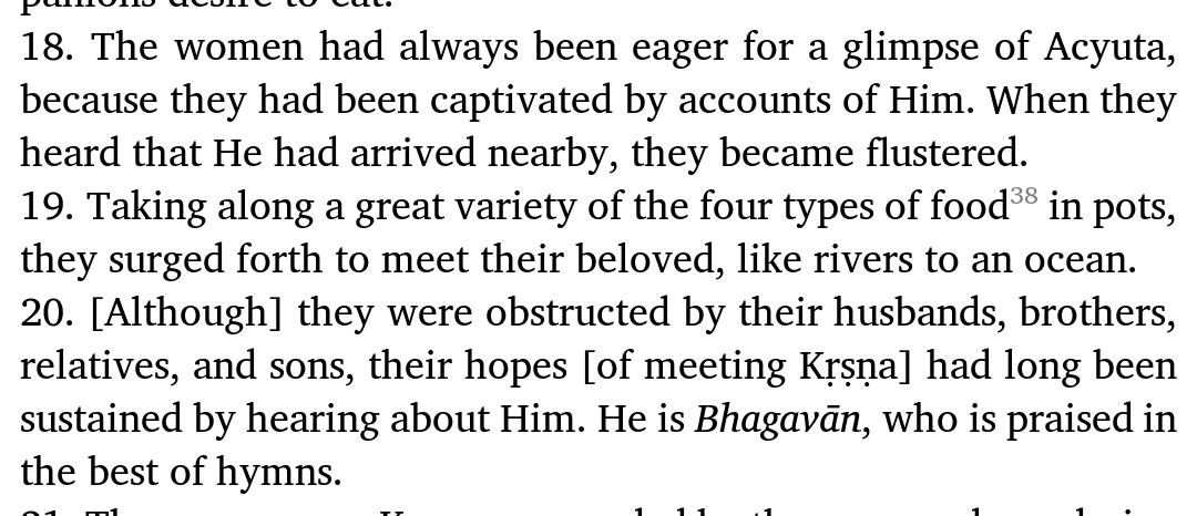 okay i like this subversion of the puranas typical sexism. for context: the brahmana men wouldnt give krishna and balarama any food, being materialistic and seeing them as mortals.