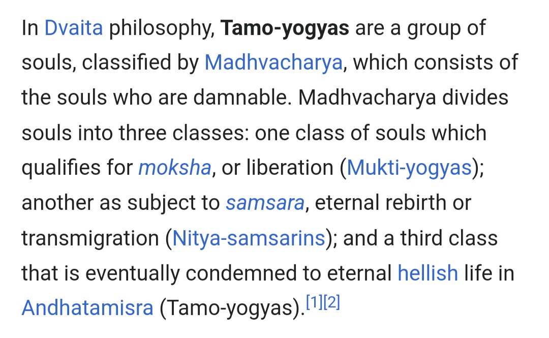 just in case you needed another reason to reject dvaita vedanta: madhva introduces eternal damnation in a religion happily without it.