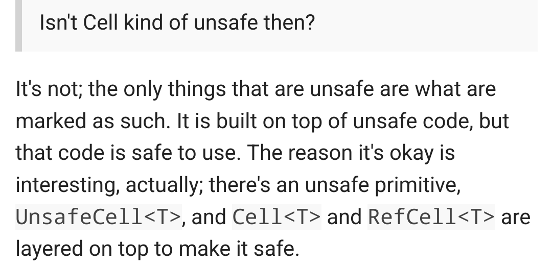 "unsafe code is actually safe" but when my "c code is safe" they act like i just committed war crimes smh