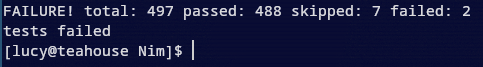 not bad but still why do your own tests fail.. nim what the hell are you doing lainstress @icedquinn @mia