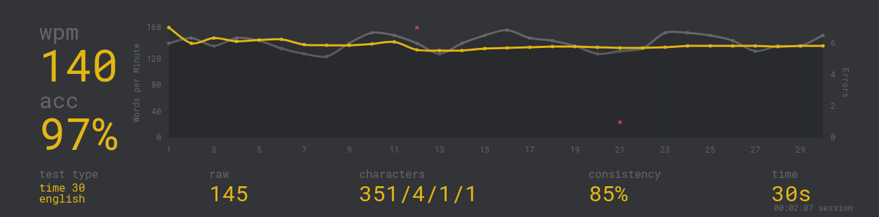 managed to reach 160wpm average but like, fuck