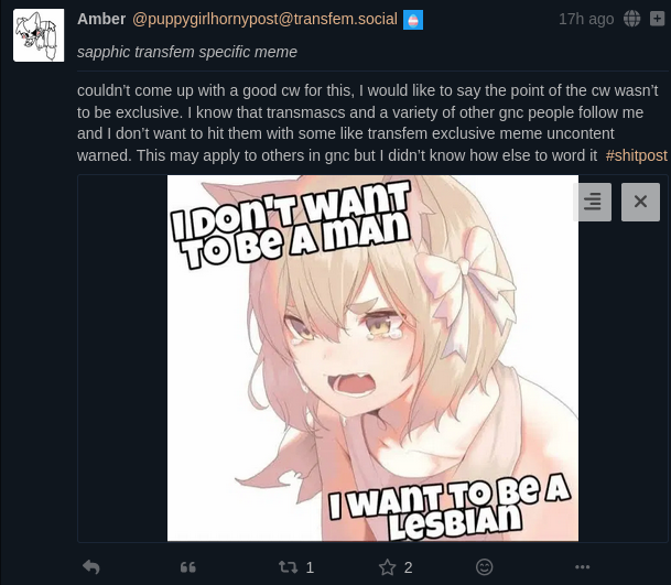 "Meso has a gay woman's taste in women, which is great." ~ @vriska@lizards.live