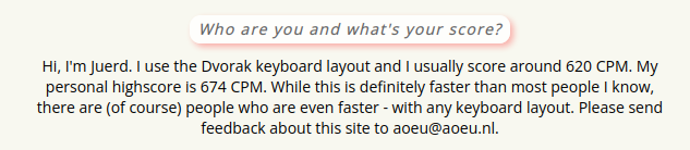 my dream was always to be as fast as the guy who made https://typing-speed-test.aoeu.eu/?lang=en which is the test i took most times before i found monkeytype so yay