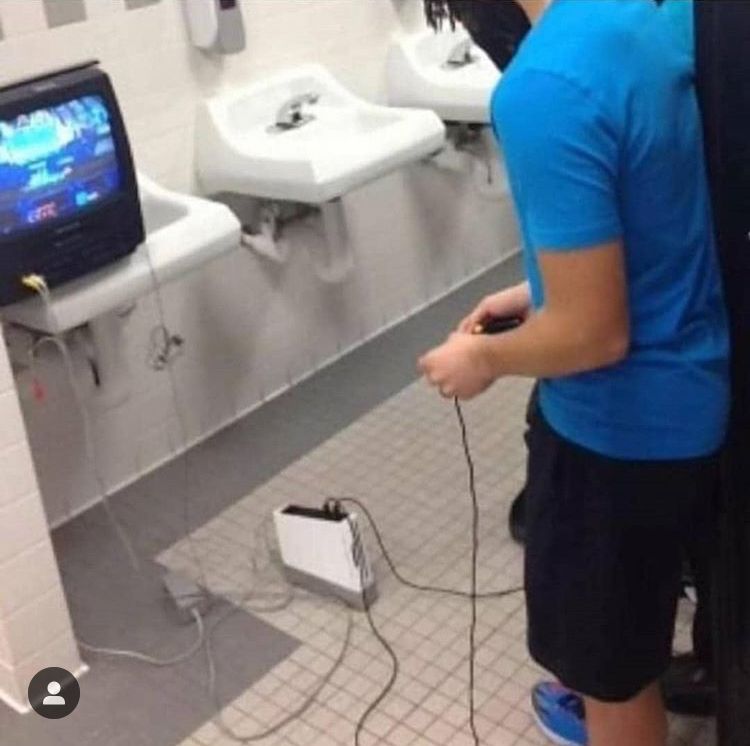 gaming night in the bathroom, bring snacks and booze