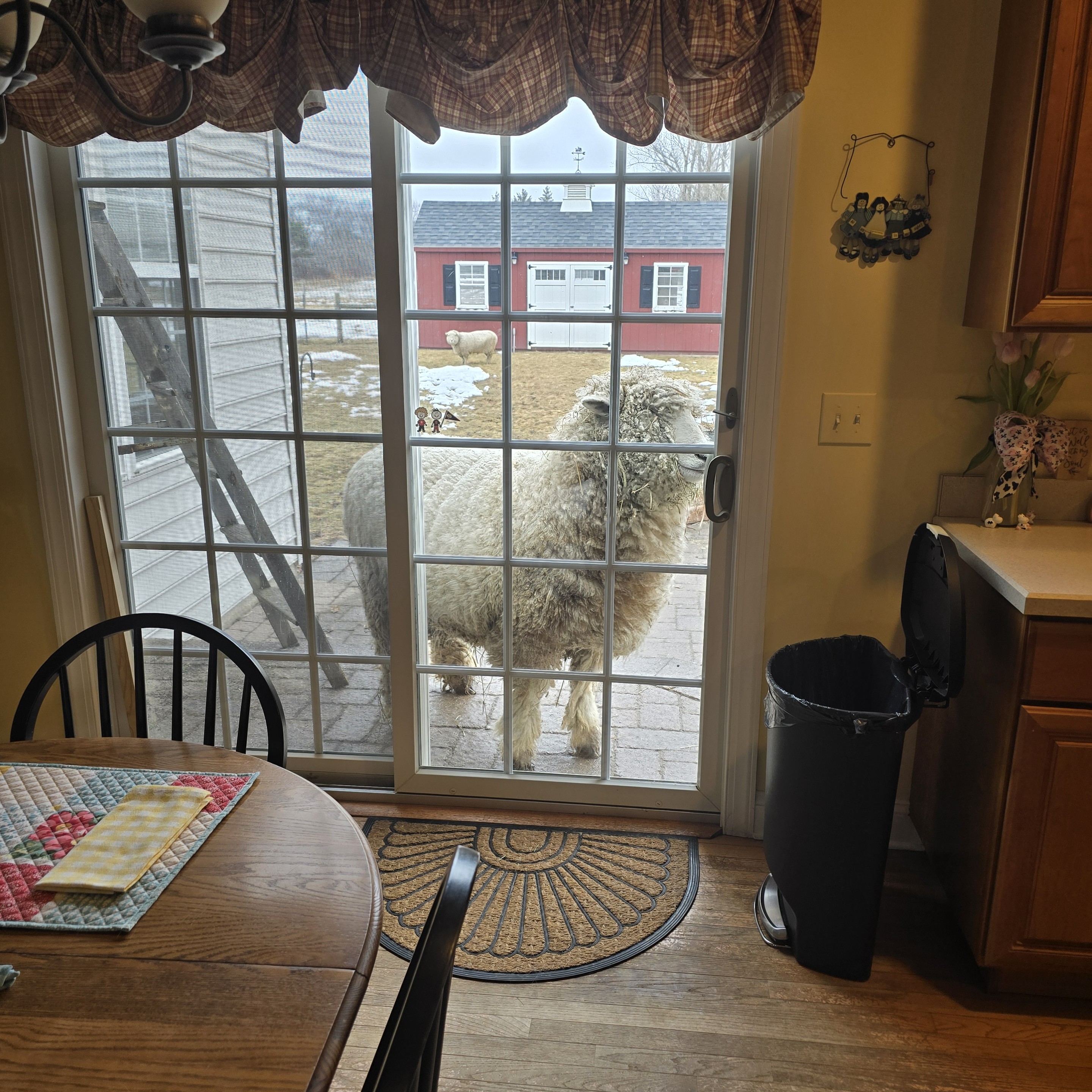 He wants to come in. I wouldn't be that surprised if the wife let him.