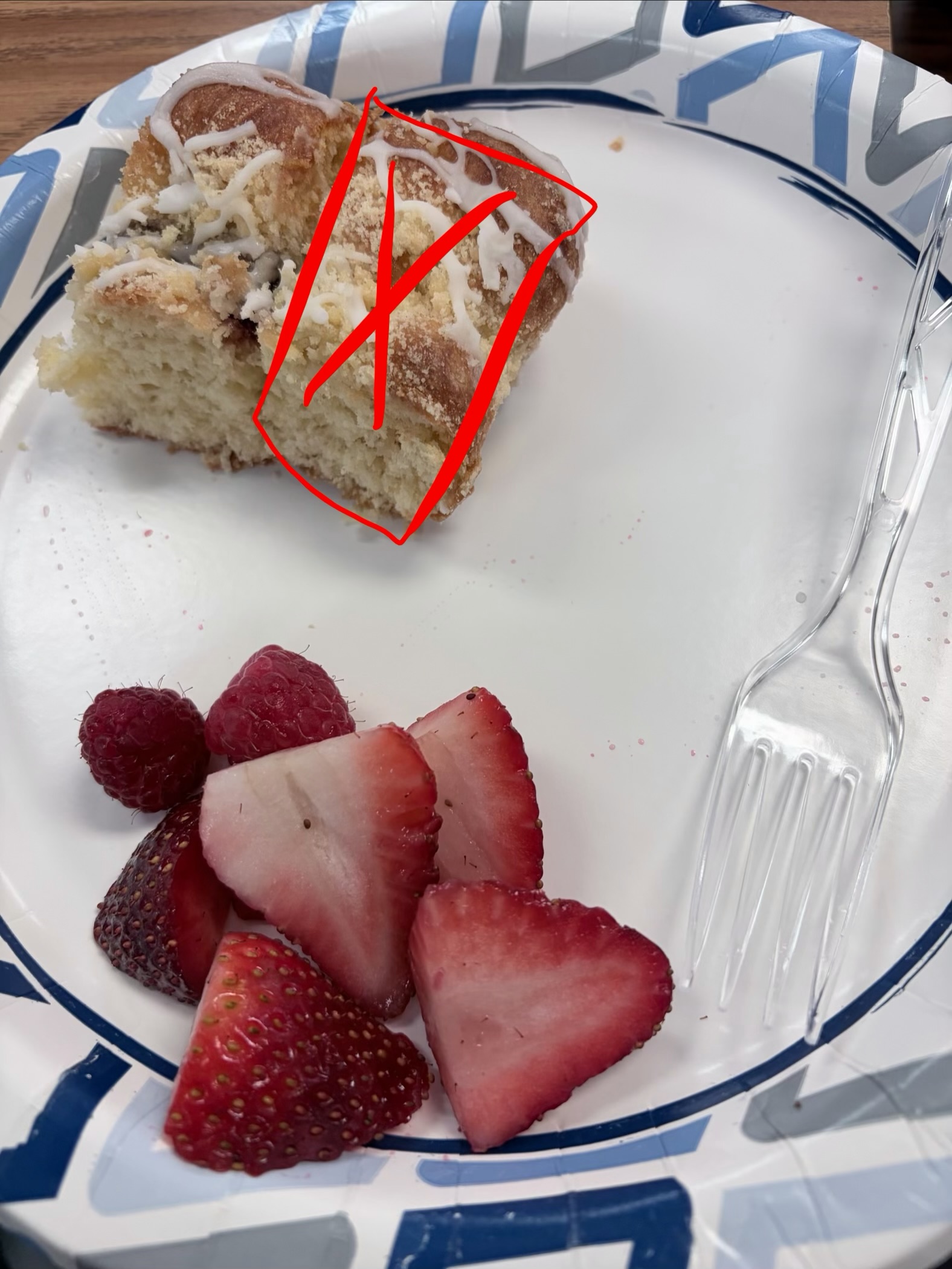 Went somewhere that served breakfast. Gave part of the pastry to someone else.