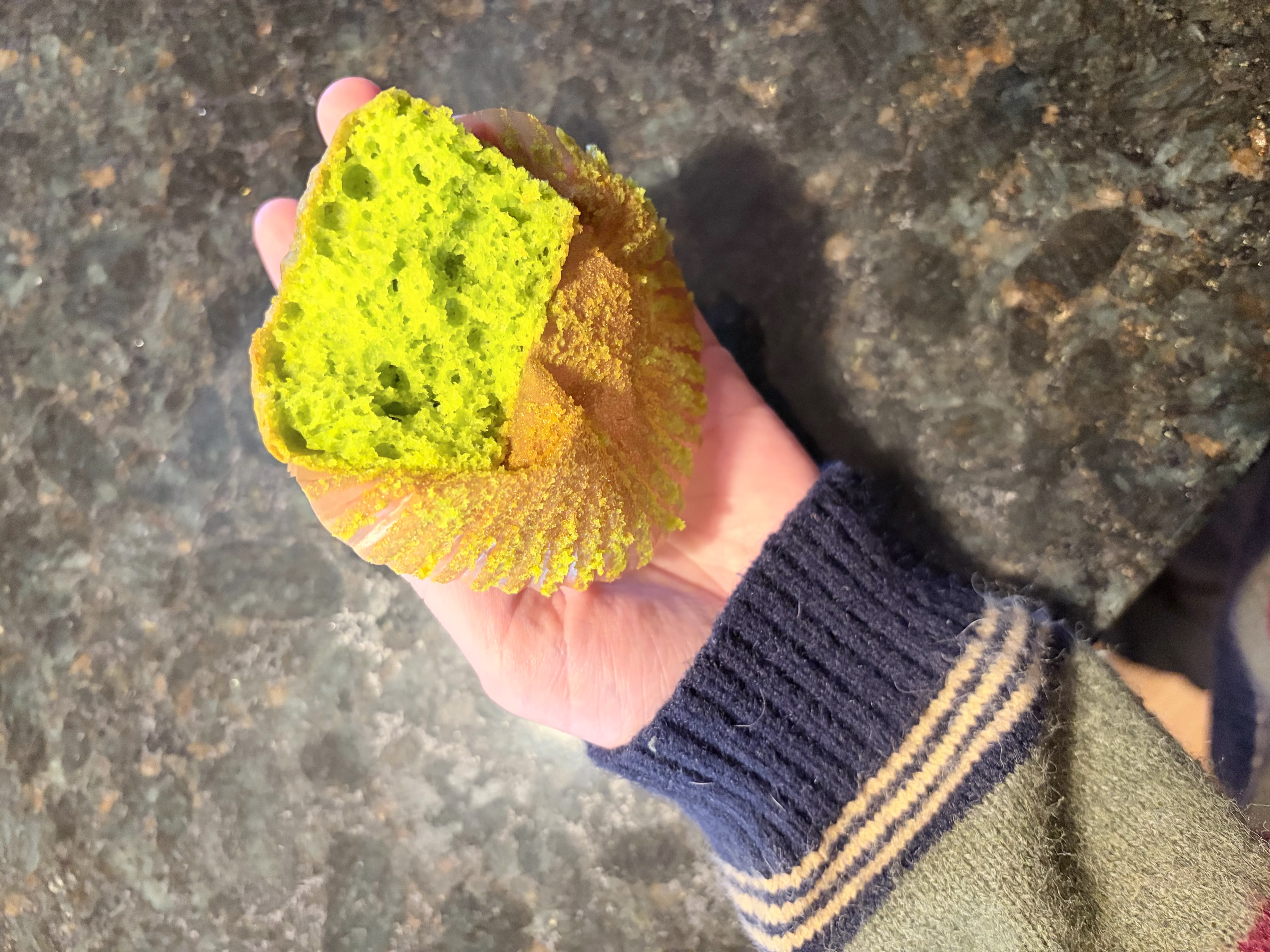 More leftover cabbage potato thing. Pardon the paper plate I packed away the real ones. Snacks. Pistachio cupcake. Didn’t want to eat it but needed to make sure they tasted ok before frosting. Didn’t get around to frosting them.